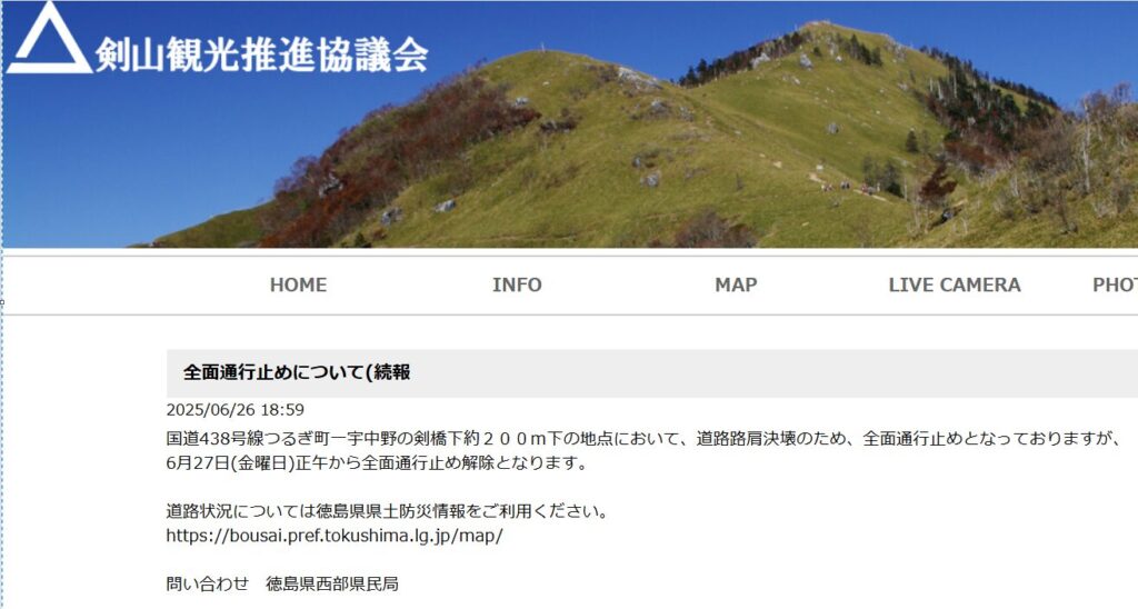 全面通行止めが2025年6月27日に解除になっているようです。剣山に関しての最新の情報は剣山観光推進協議会(http://www.turugisan.com/index.html)にて確認してください。