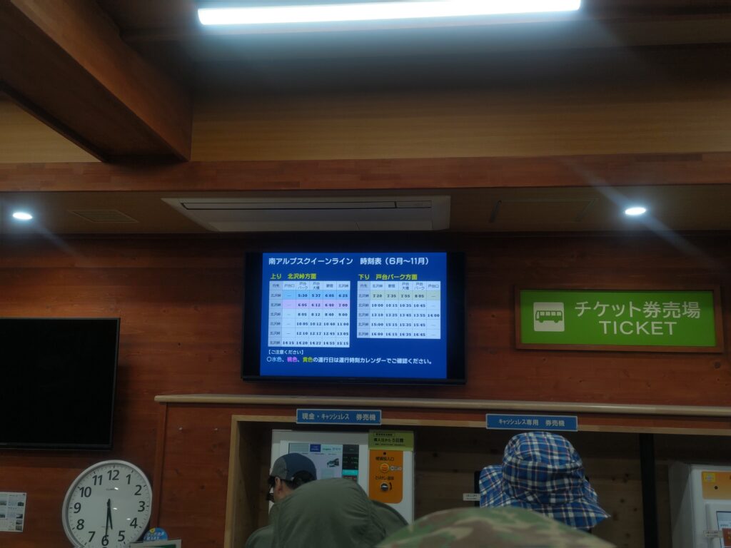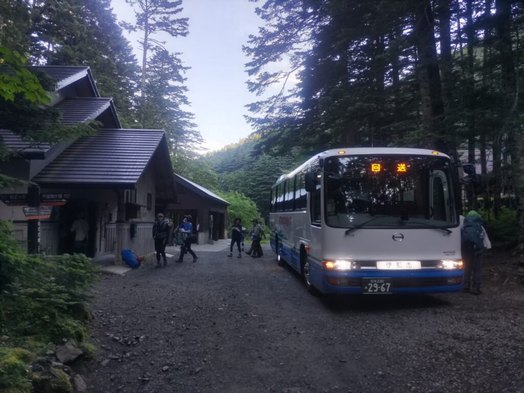写真で見てもわかるように北沢峠行きのバスは5時30分か6時5分始発。乗車時間は約55分です。
