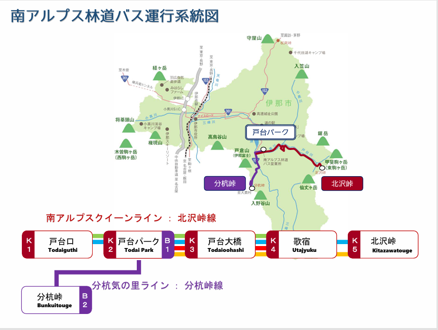 - 登山バスの出発拠点:北沢峠方面行きの林道バスが発着するため、仙丈ケ岳登山のアクセス拠点として最適。