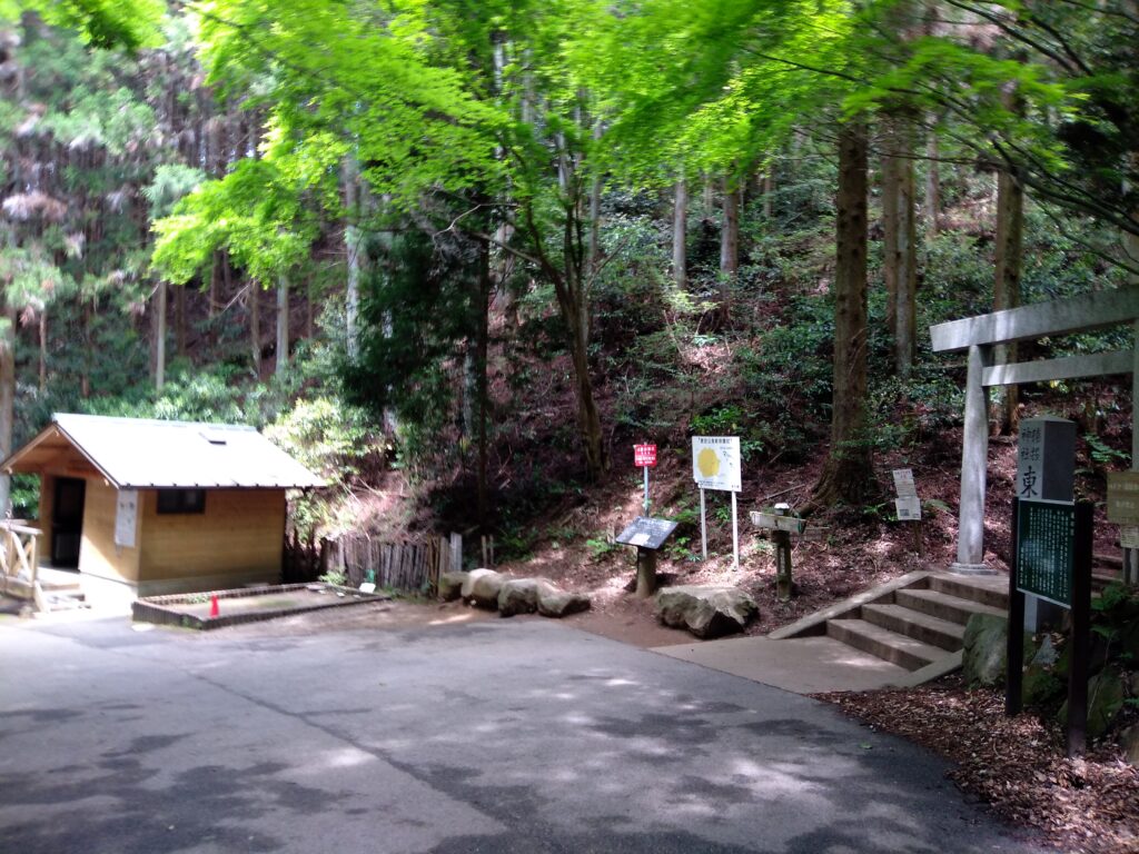 山頂までのルートの真ん中あたりに猿投神社 東の宮 鳥居の前にトイレがあります。